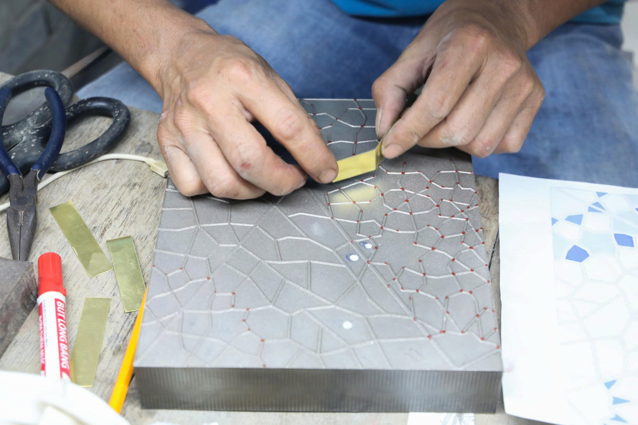 Trước khi bước vào quy trình sản xuất, hệ thống rập hoa văn cần được kiểm tra và hiệu chỉnh chính xác.